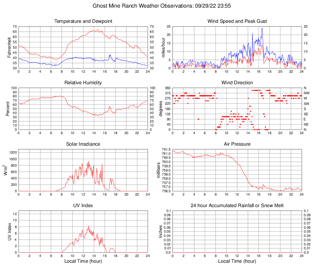 Temperature (F) 41.5 38.5 @ 06:50 67.2 @ 14:45 52.0