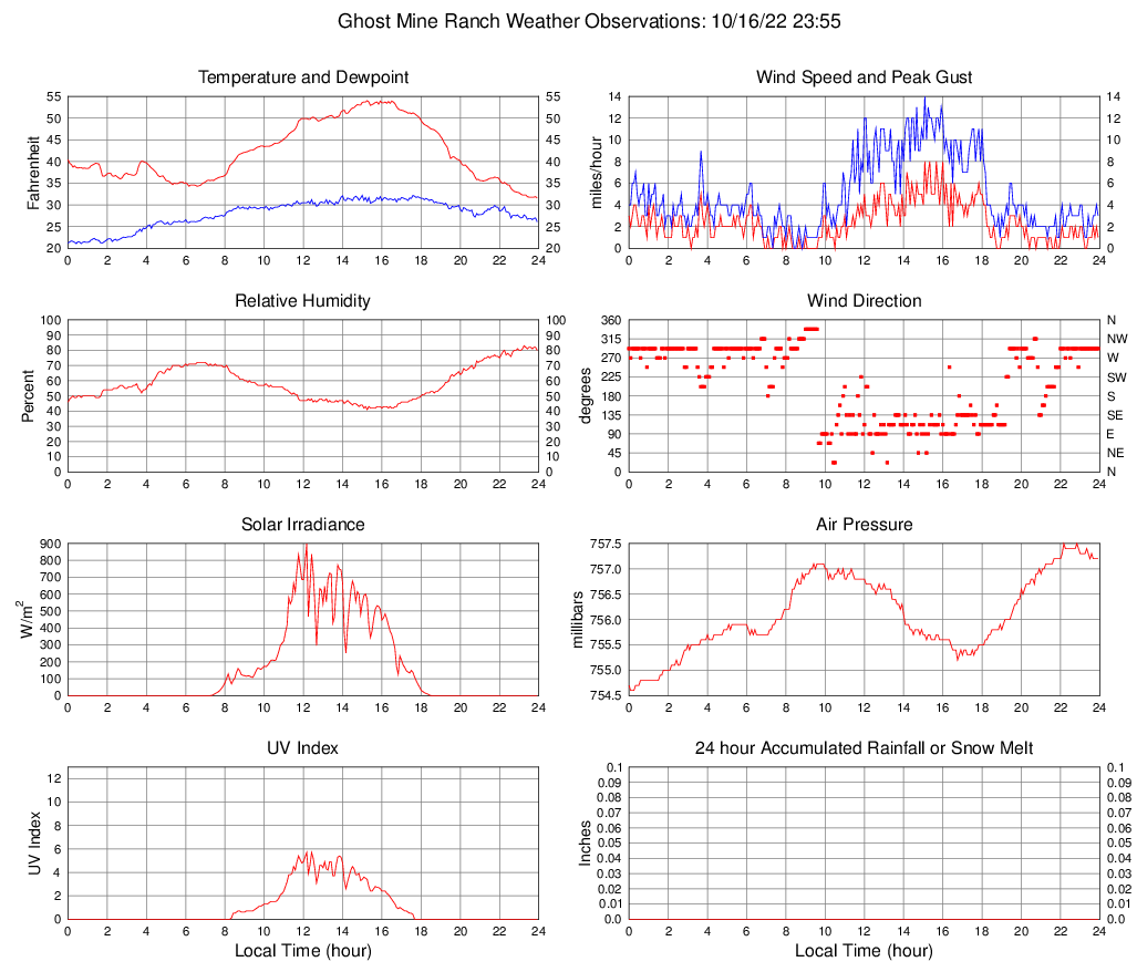 Temperature (F) 31.6 31.6 @ 23:55 54.0 @ 15:15 42.1