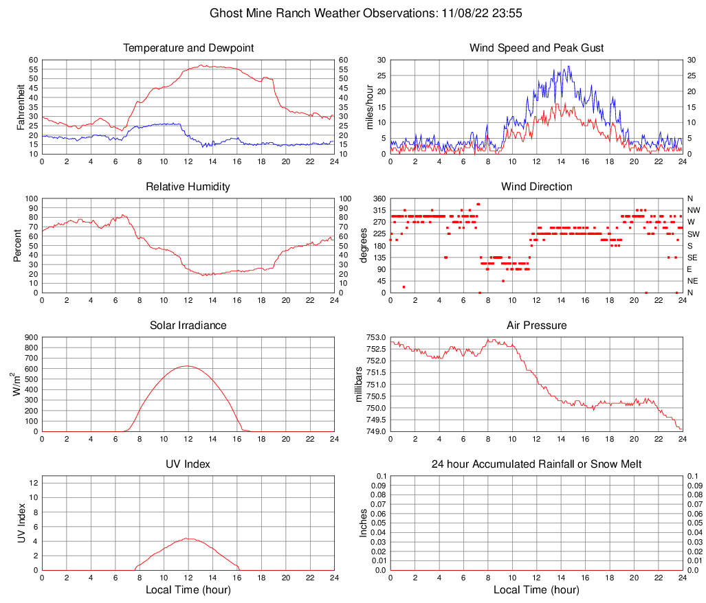 Dewpoint (F) 16.7 13.6 @ 13:10 26.5 @ 10:45 18.5