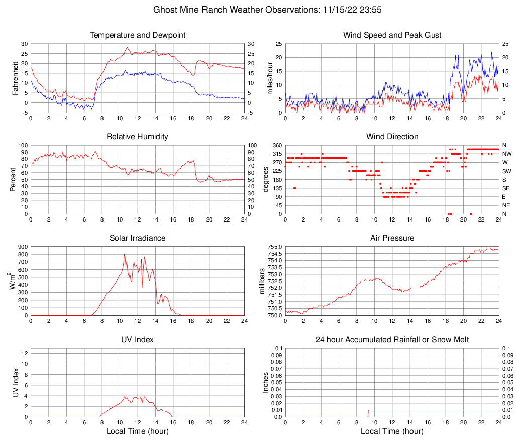 Dewpoint (F) 2.0 -3.3 @ 05:55 16.6 @ 10:35 6.9