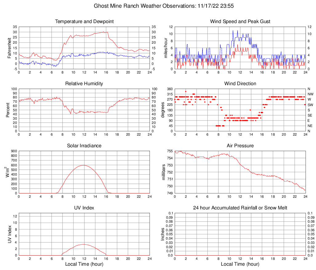 Dewpoint (F) 6.9 -2.5 @ 06:25 11.2 @ 16:15 5.5
