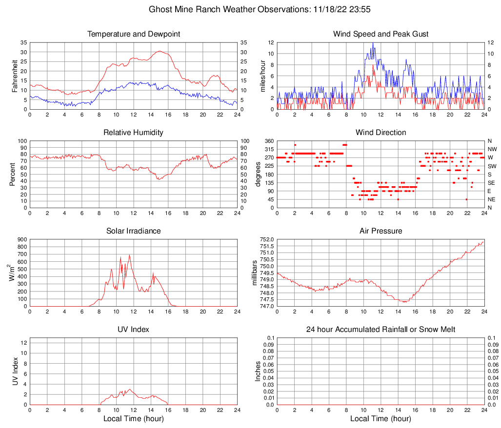 Temperature (F) 10.3 7.7 @ 04:25 30.5 @ 14:55 16.9