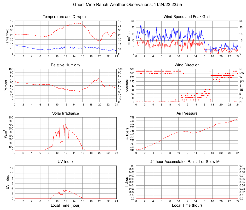 Temperature (F) 28.1 18.1 @ 19:40 37.5 @ 14:40 27.8