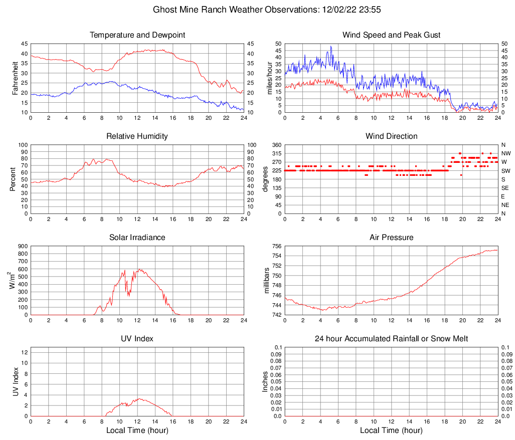 Temperature (F) 21.2 19.7 @ 23:35 41.9 @ 14:50 34.3