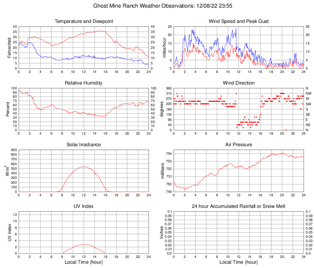 Dewpoint (F) 2.6 2.6 @ 23:55 25.0 @ 02:05 11.4