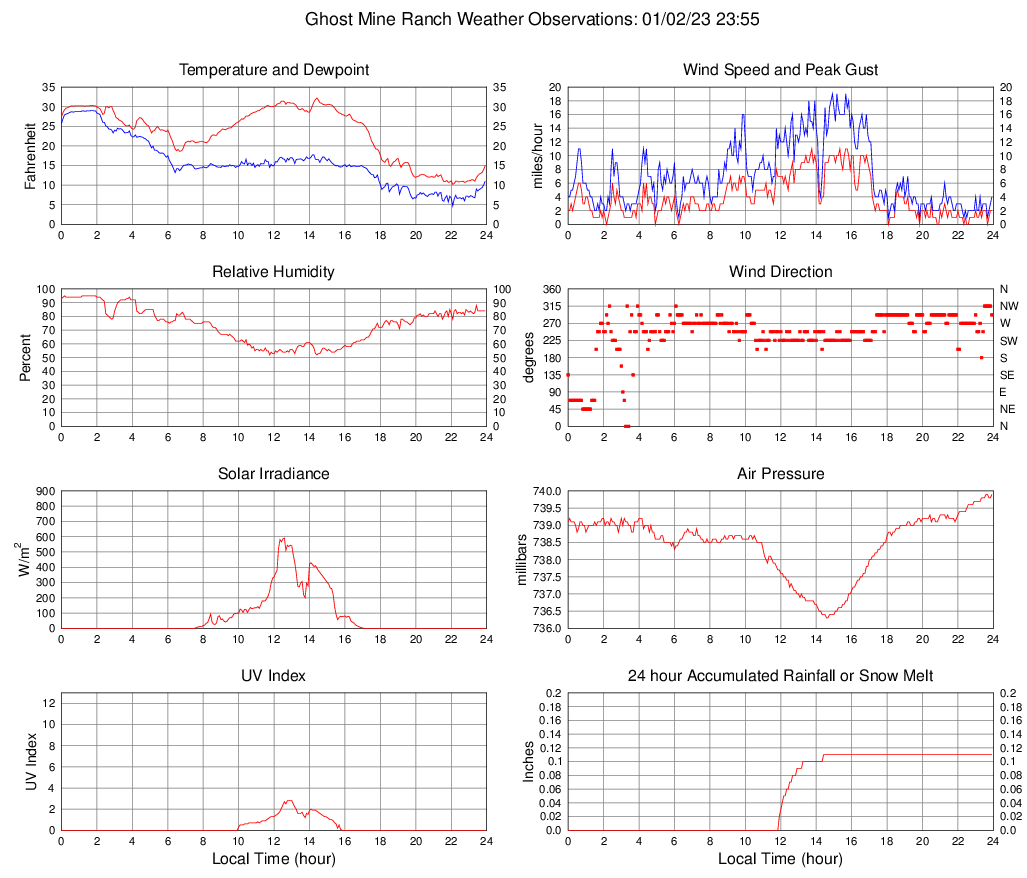 Temperature (F) 15.0 10.2 @ 22:05 32.2 @ 14:25 23.3