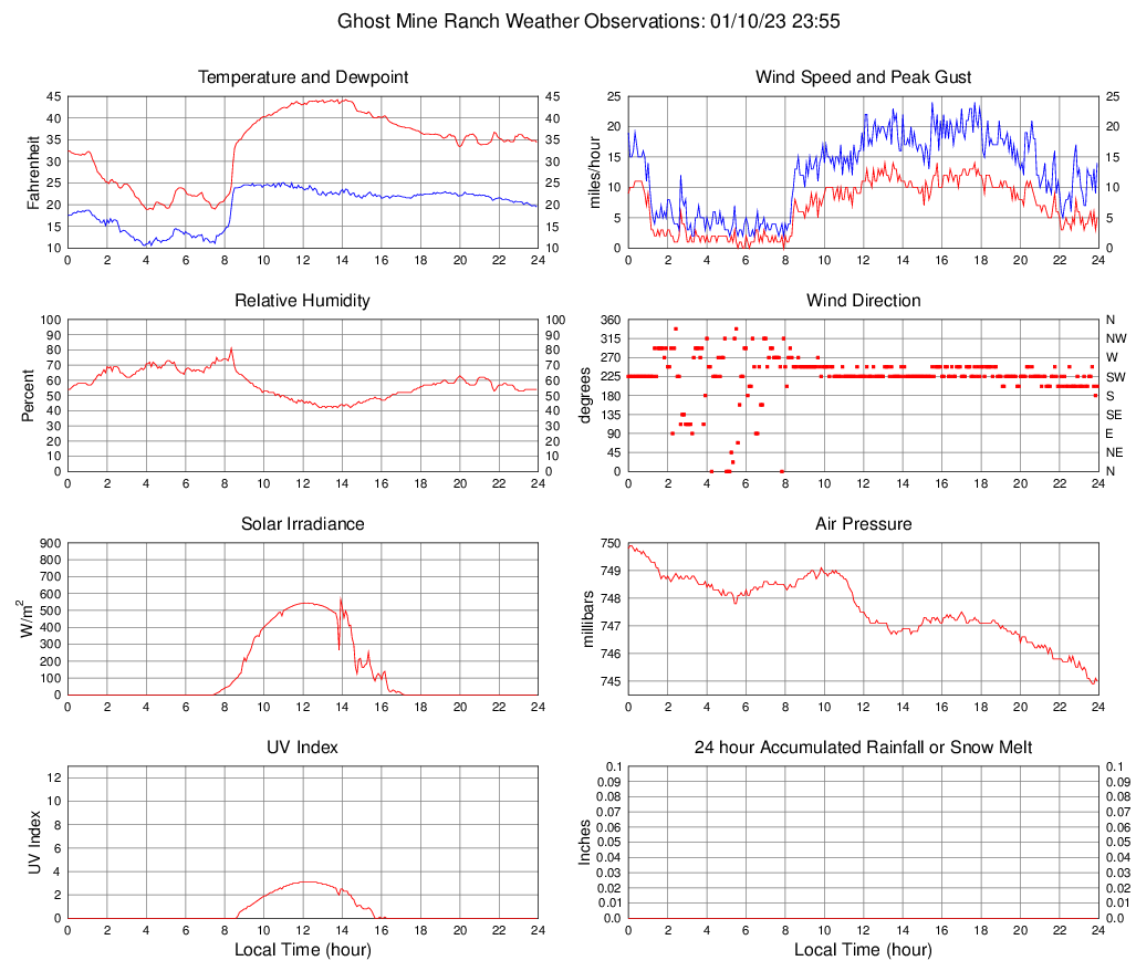 Temperature (F) 34.4 18.9 @ 04:00 44.2 @ 13:45 33.5