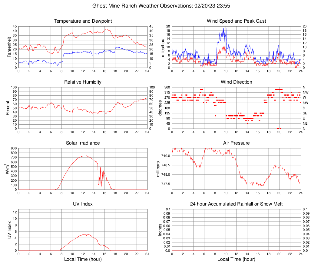 Temperature (F) 22.7 15.3 @ 06:15 42.2 @ 16:20 29.6