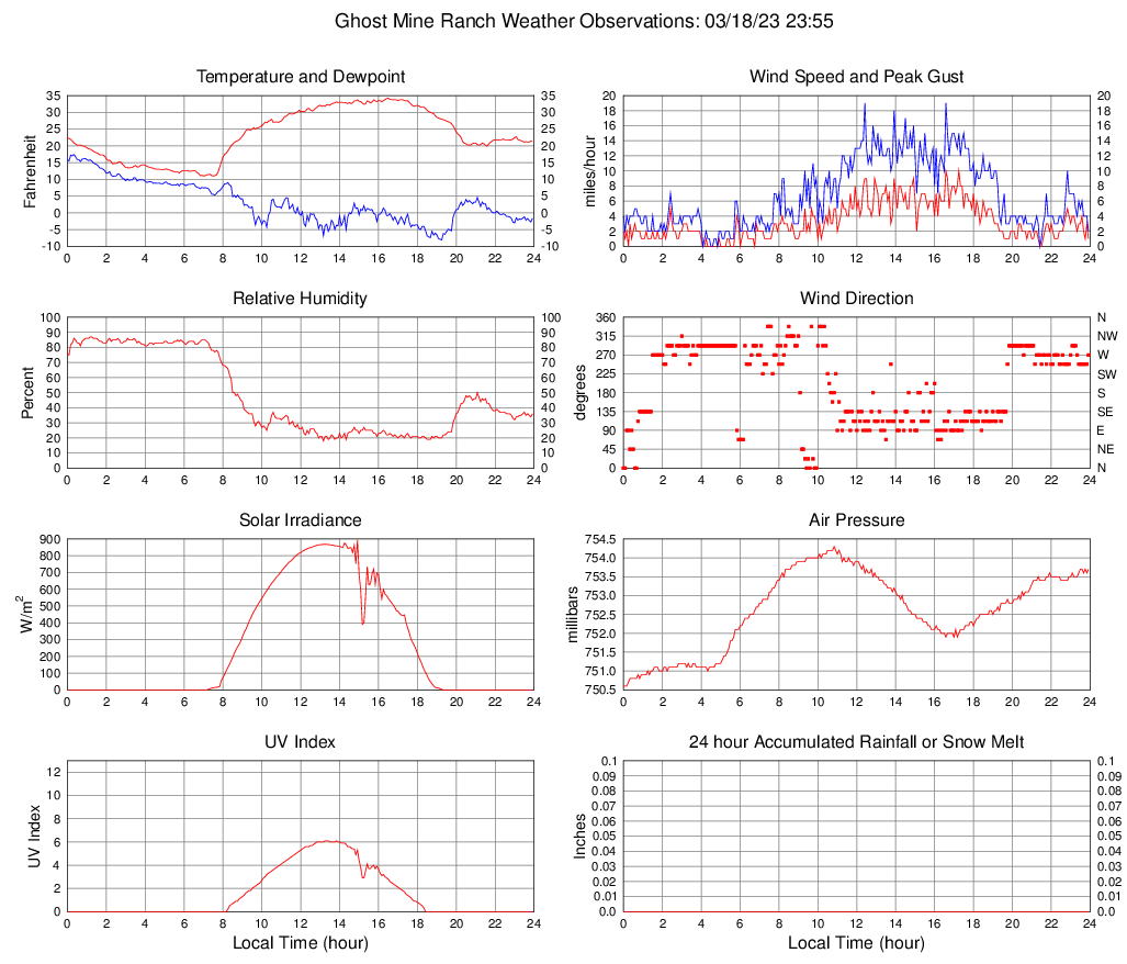 Dewpoint (F) -1.6 -8.1 @ 19:15 17.4 @ 00:20 3.1