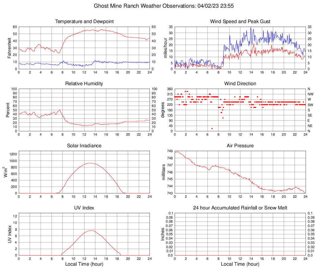 Temperature (F) 43.2 22.8 @ 07:20 56.2 @ 15:20 42.2