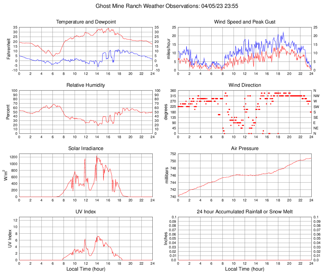 Dewpoint (F) 1.4 -6.4 @ 14:10 11.7 @ 17:50 2.4