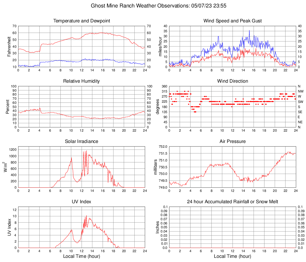 Temperature (F) 38.6 31.0 @ 02:55 60.3 @ 15:40 48.1