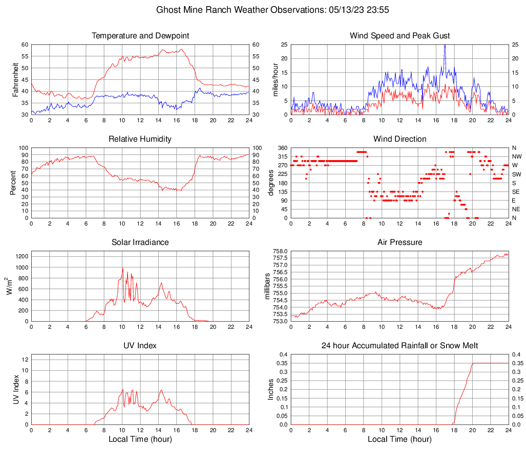 Temperature (F) 42.2 36.6 @ 05:35 58.0 @ 16:35 46.4