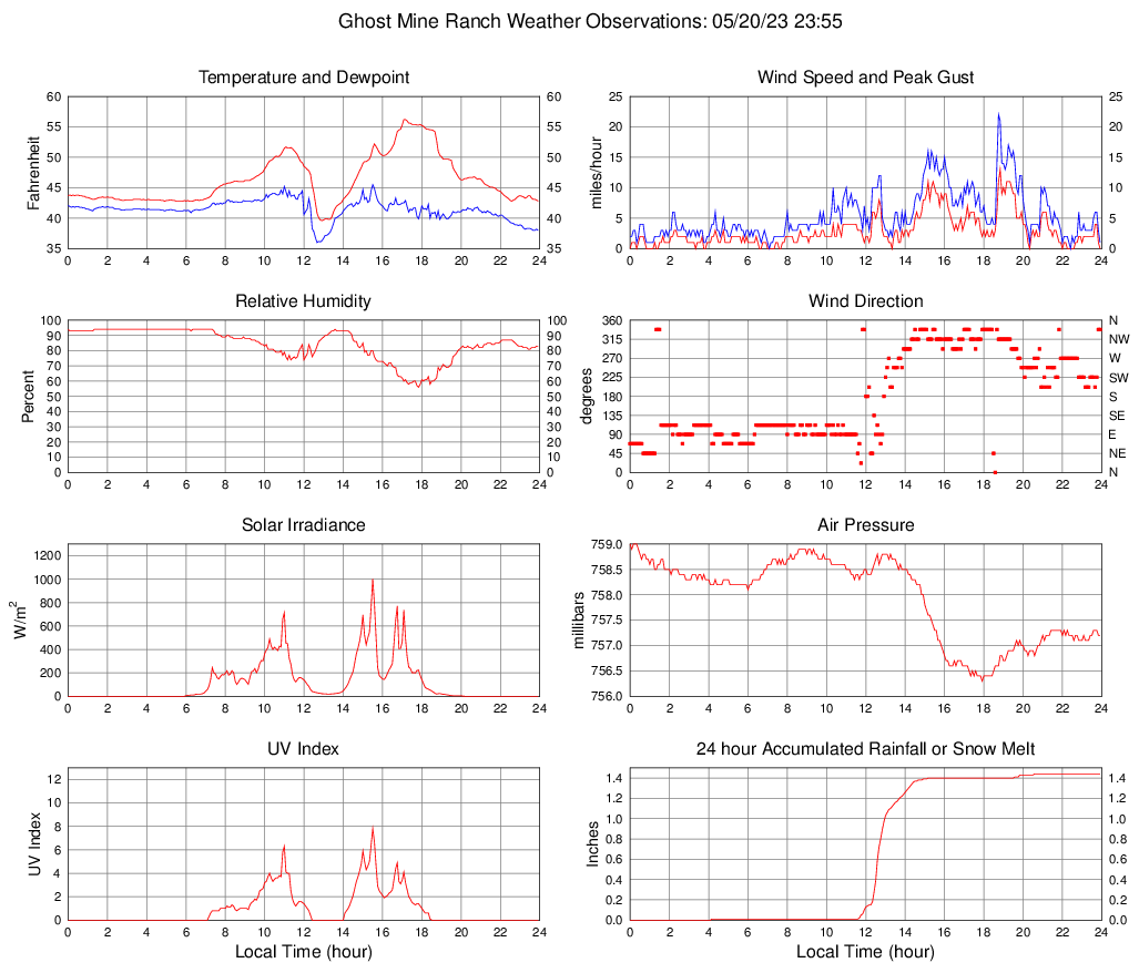 Temperature (F) 42.8 39.6 @ 12:55 56.2 @ 17:05 46.2