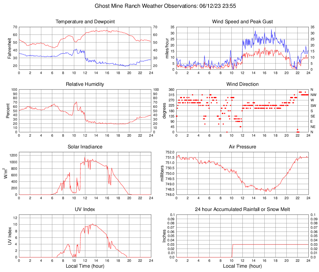 Dewpoint (F) 27.9 19.0 @ 19:20 41.5 @ 10:25 28.9
