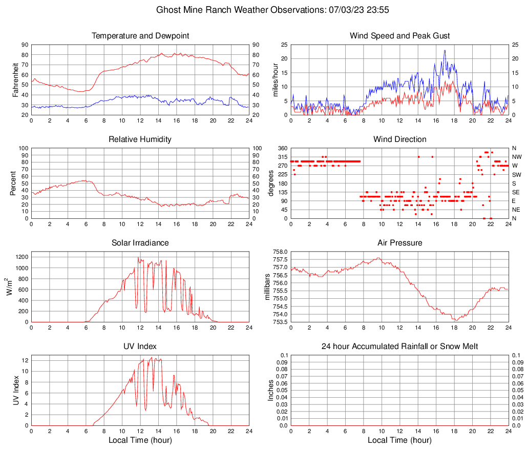 Temperature (F) 61.2 43.3 @ 05:25 81.6 @ 16:25 64.8