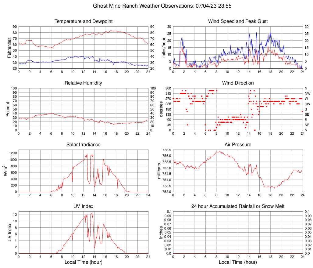 Temperature (F) 61.7 55.1 @ 06:05 83.4 @ 17:05 70.0