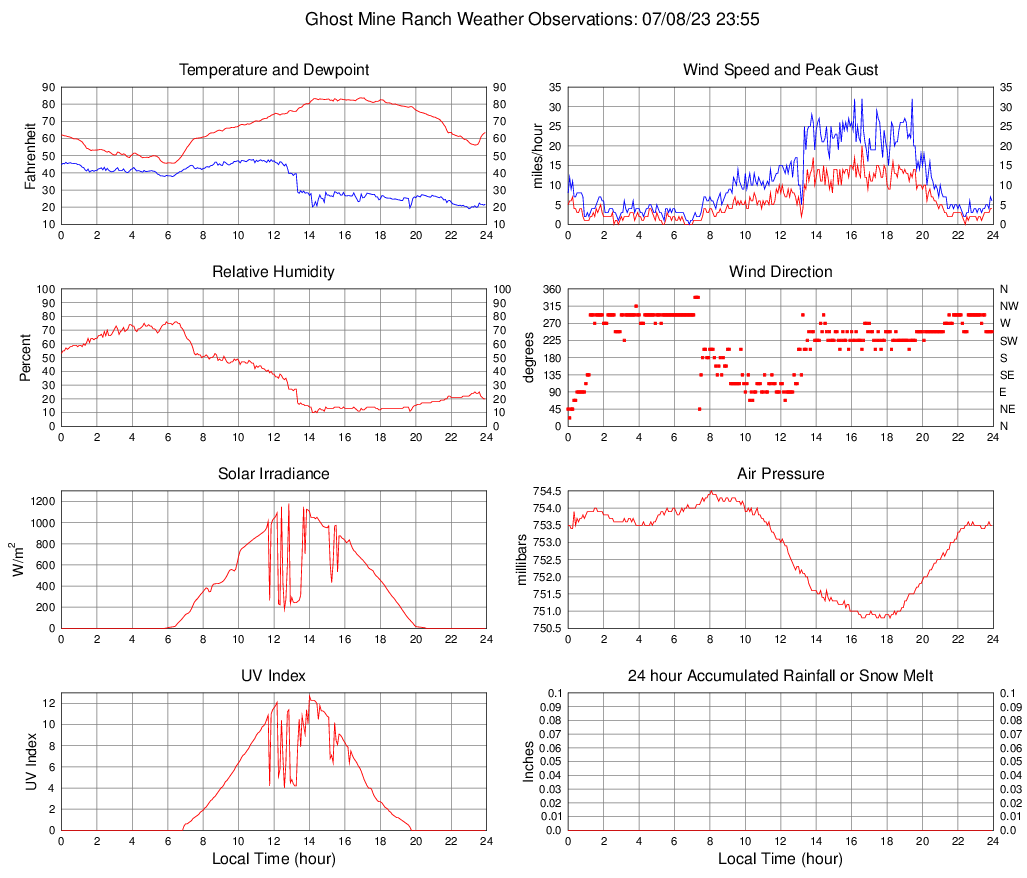 Temperature (F) 63.5 45.6 @ 05:55 83.7 @ 16:55 66.6