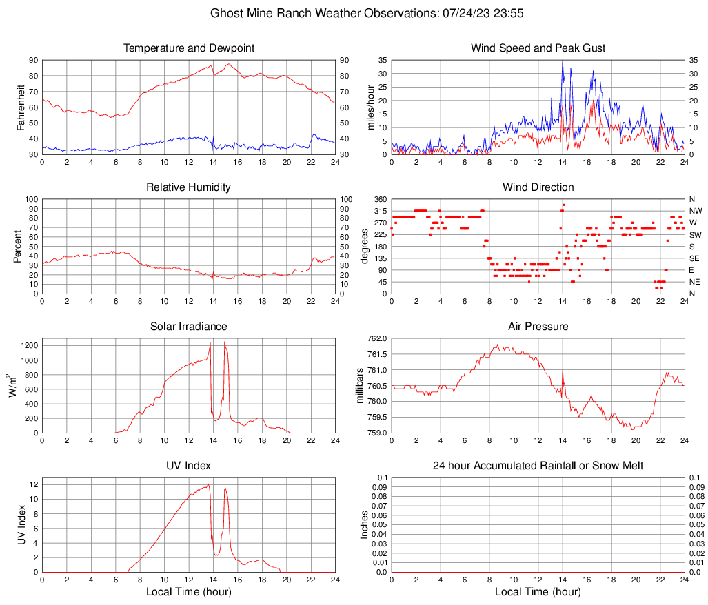 Temperature (F) 63.3 53.5 @ 05:35 87.5 @ 15:15 70.8