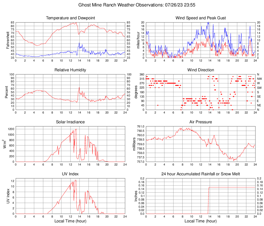 Temperature (F) 64.9 52.2 @ 04:35 84.9 @ 13:15 70.3