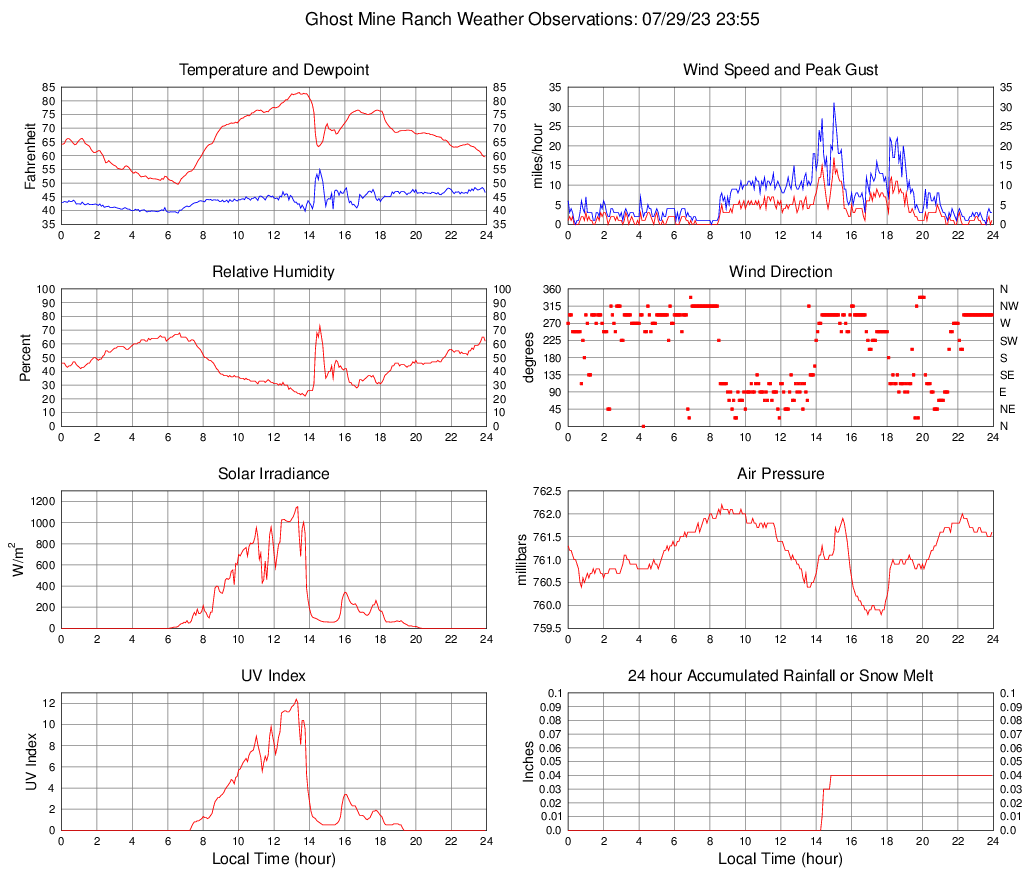 Temperature (F) 59.6 49.6 @ 06:35 83.0 @ 13:25 66.5