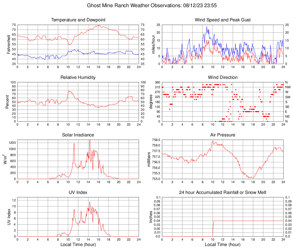 Temperature (F) 62.0 54.4 @ 10:10 74.4 @ 16:00 64.2