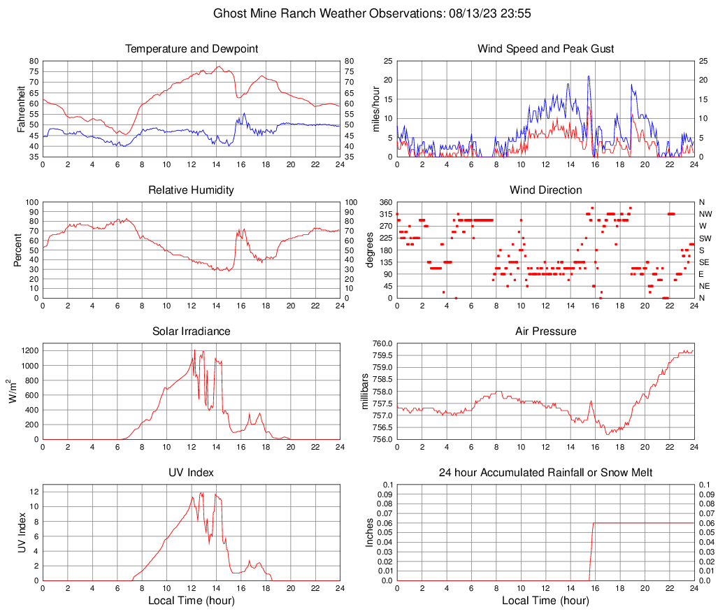 Temperature (F) 58.7 45.5 @ 06:40 77.5 @ 14:15 62.5