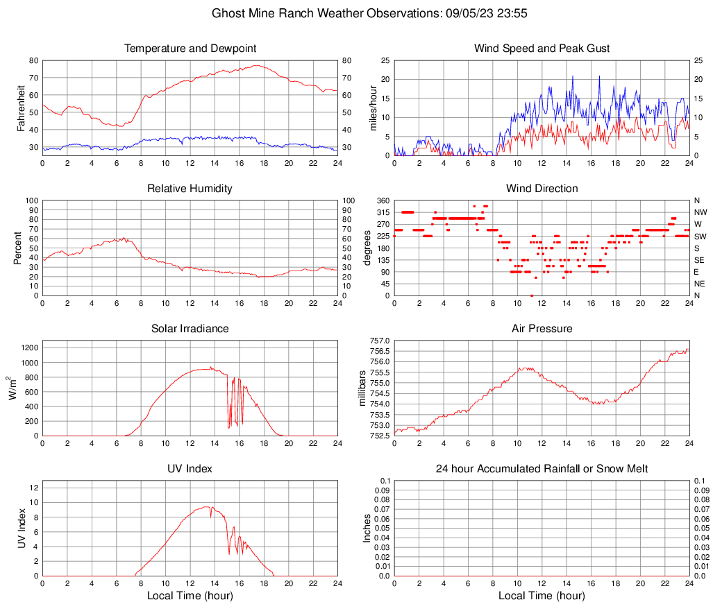 Temperature (F) 62.7 41.9 @ 06:15 77.1 @ 17:30 61.8