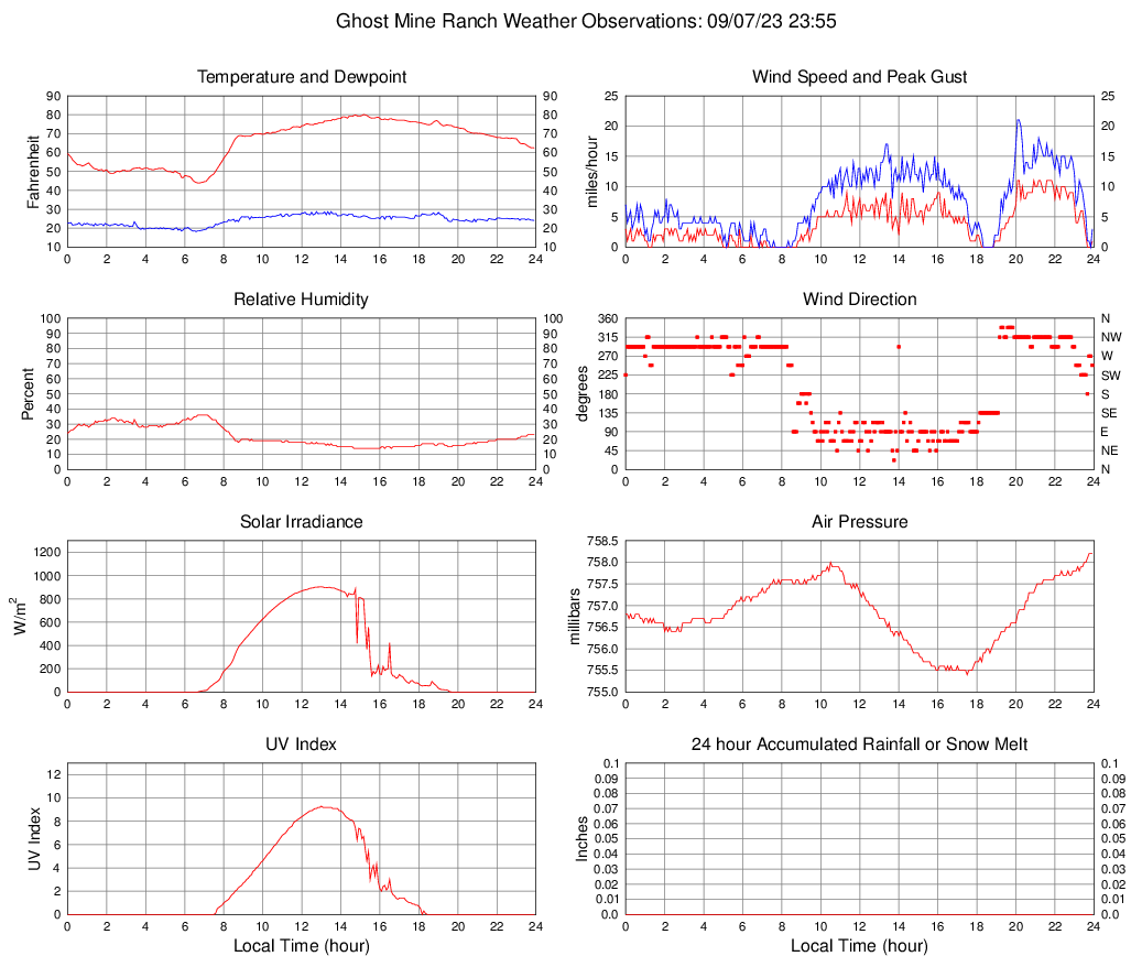 Temperature (F) 62.4 43.9 @ 06:40 80.1 @ 15:10 65.3