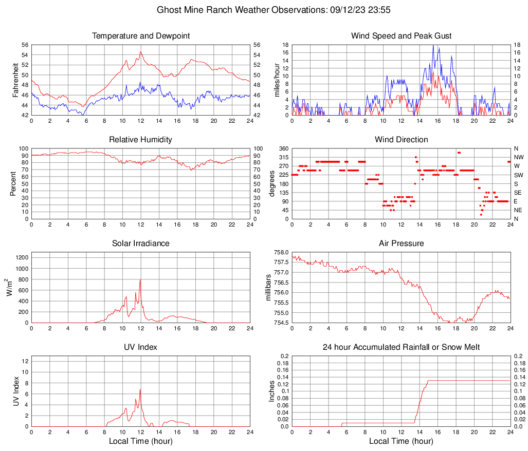 Temperature (F) 48.7 43.7 @ 05:35 54.6 @ 12:00 49.3