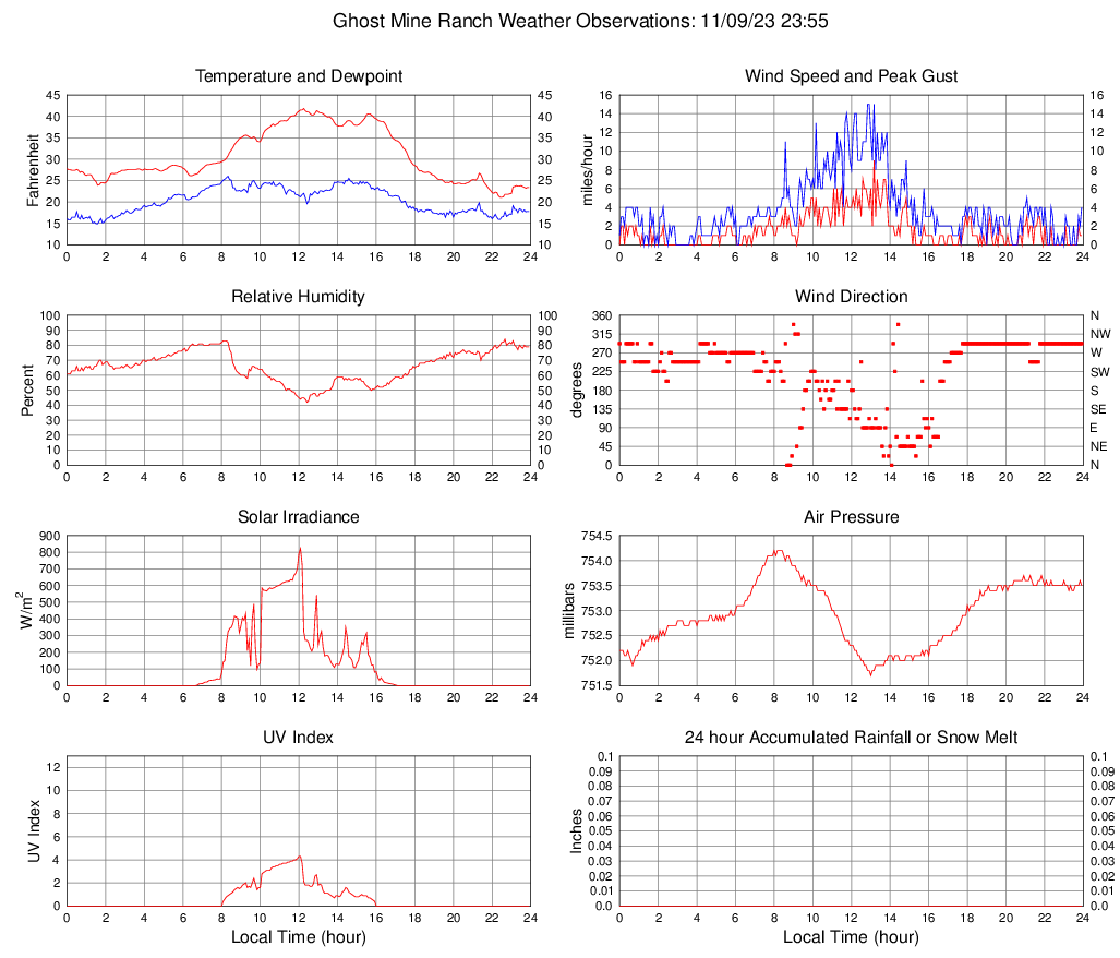 Temperature (F) 23.4 21.1 @ 22:25 41.8 @ 12:15 30.7