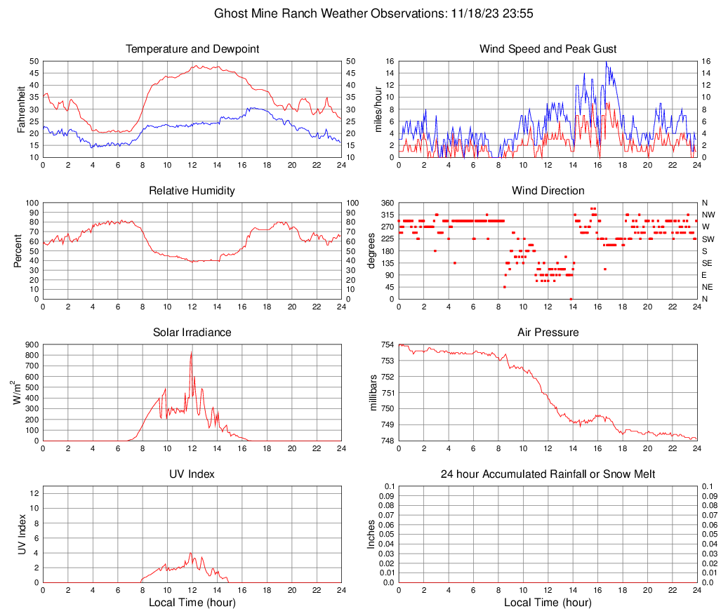 Temperature (F) 26.0 20.3 @ 04:45 48.1 @ 12:20 34.5