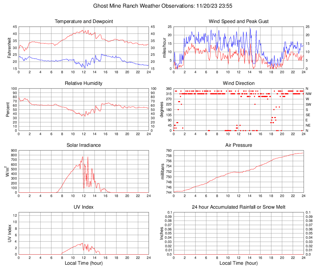 Temperature (F) 32.5 27.6 @ 01:05 42.5 @ 11:45 35.2