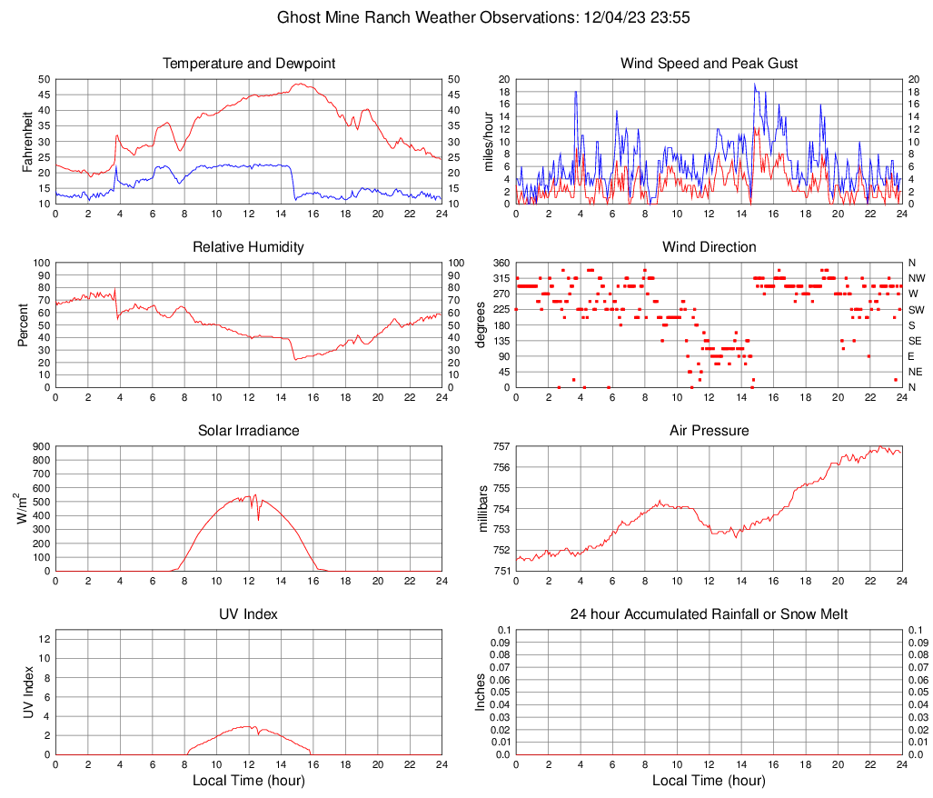 Temperature (F) 24.2 18.6 @ 02:10 48.6 @ 15:15 34.1