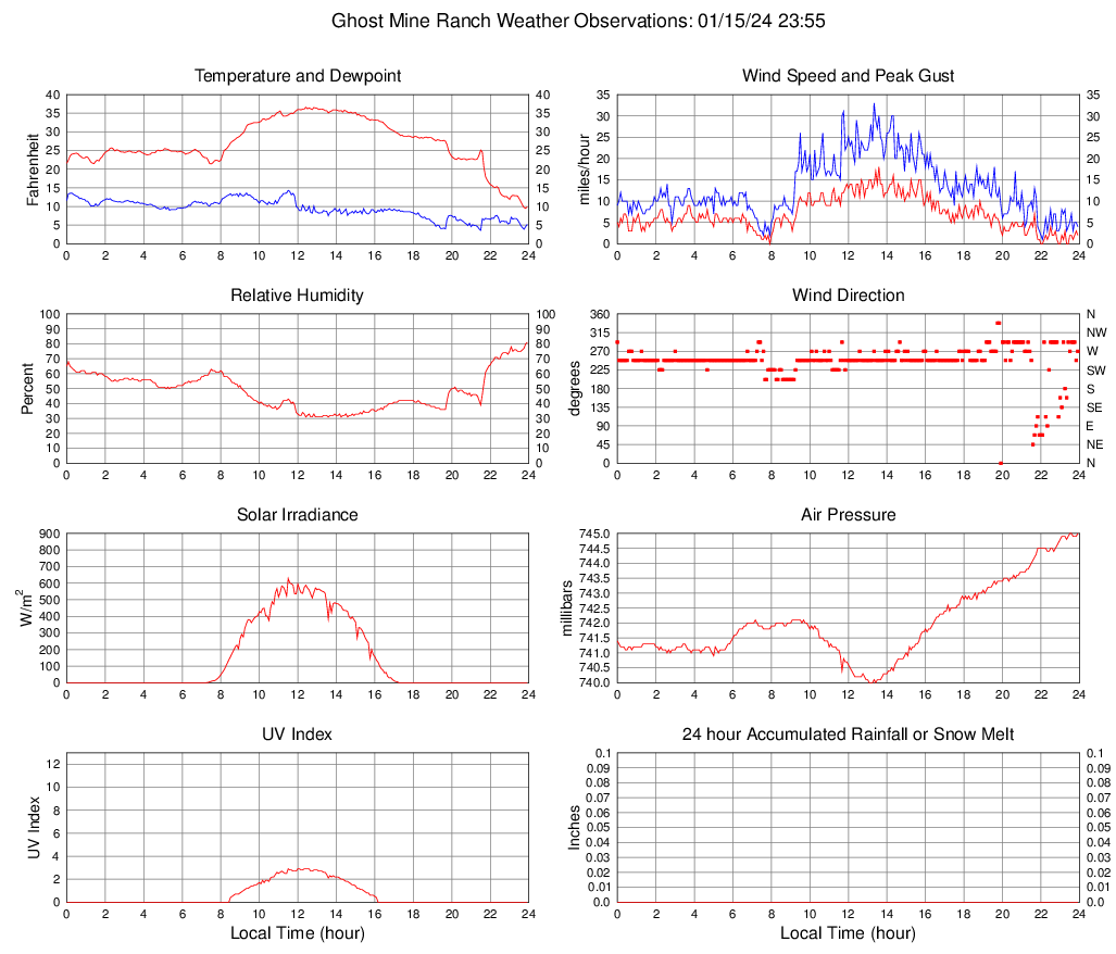 Temperature (F) 9.9 9.5 @ 23:50 36.6 @ 12:25 26.9