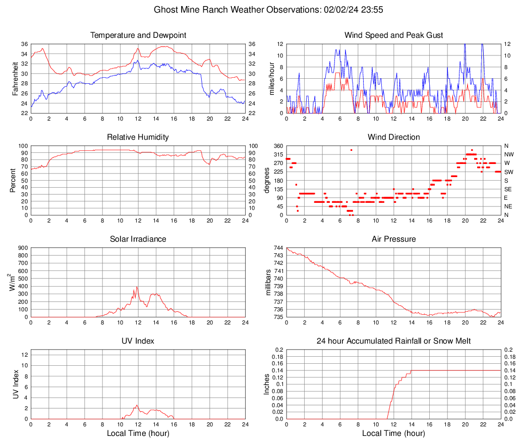 Temperature (F) 28.7 28.6 @ 23:20 35.5 @ 14:35 32.0