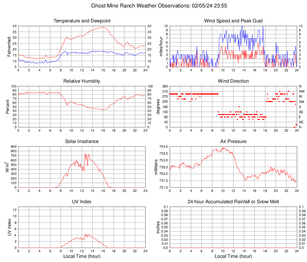 Temperature (F) 23.1 11.9 @ 03:15 38.9 @ 15:55 24.2