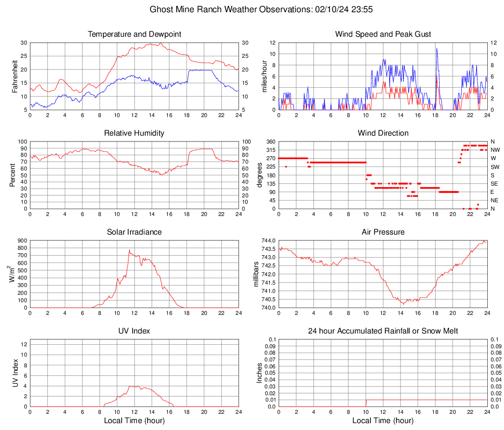 Temperature (F) 20.3 11.4 @ 05:40 30.0 @ 15:00 20.7