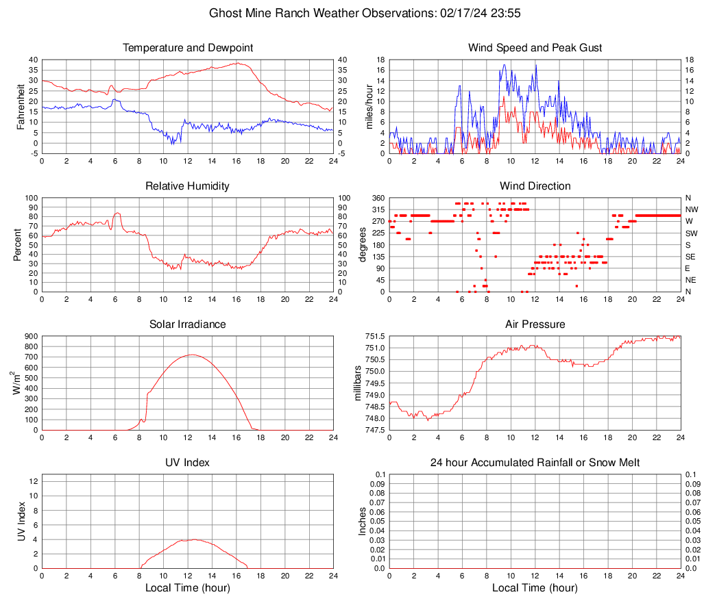 Temperature (F) 16.9 15.4 @ 23:40 38.4 @ 16:10 27.8