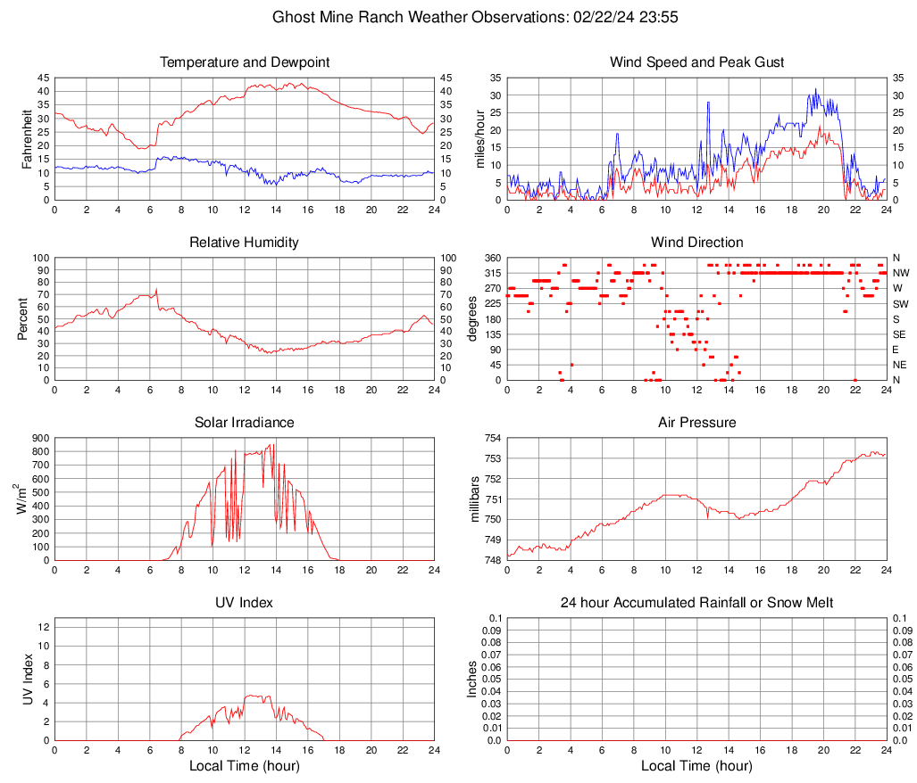 Temperature (F) 28.3 18.8 @ 05:20 43.0 @ 14:50 32.4