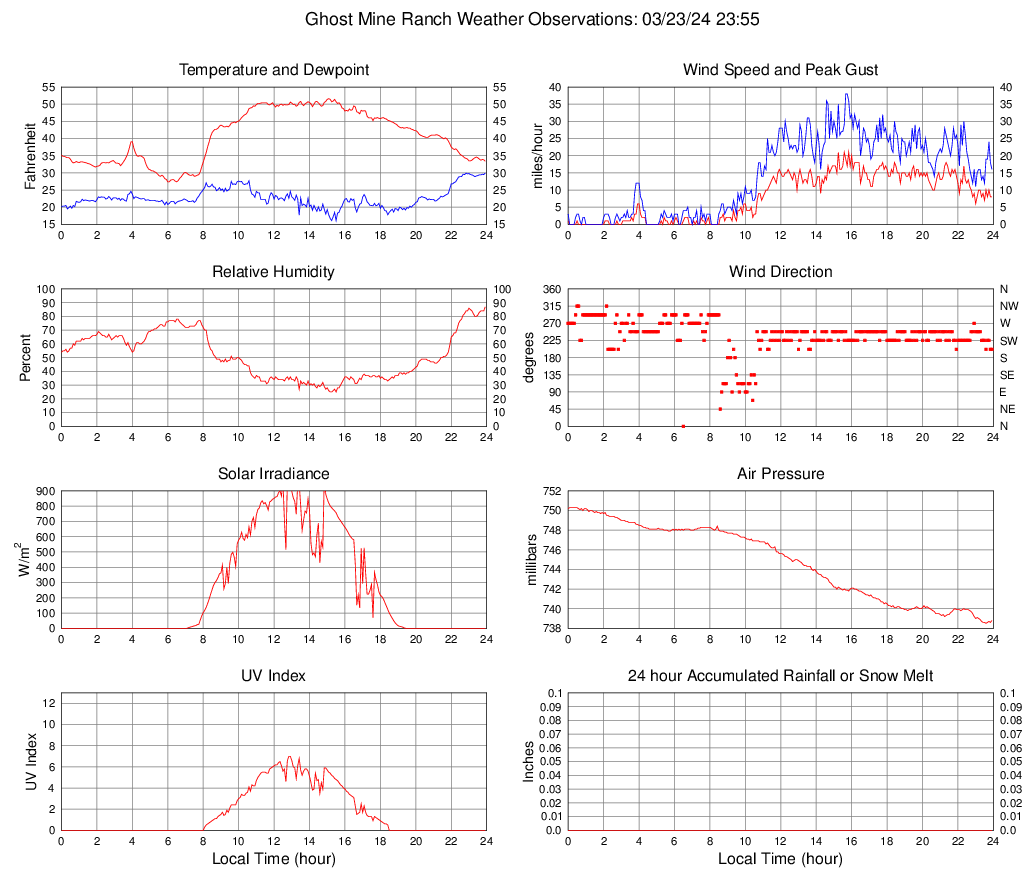 Temperature (F) 33.4 27.4 @ 06:00 51.6 @ 15:05 40.5