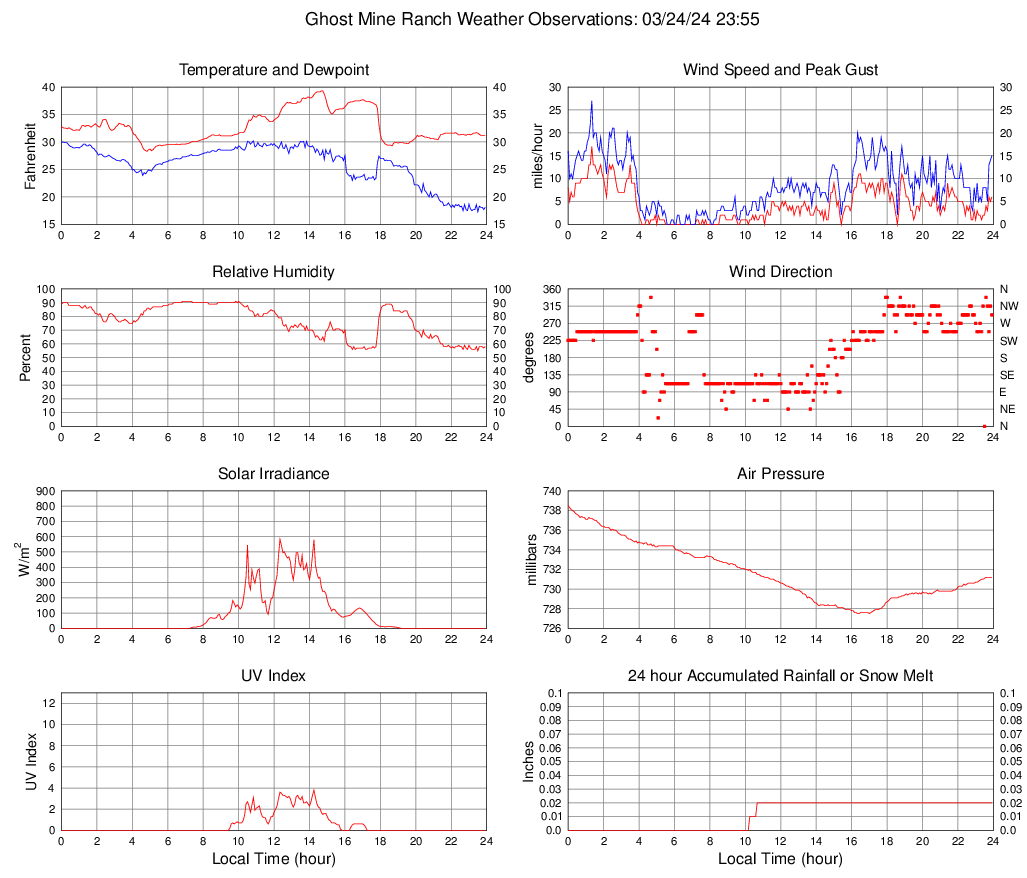 Temperature (F) 31.2 28.3 @ 04:50 39.3 @ 14:40 32.7