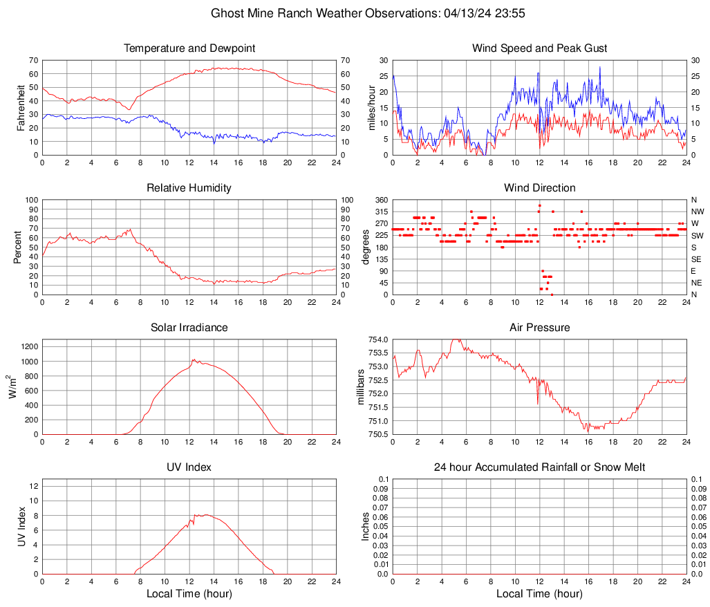 Dewpoint (F) 13.9 8.2 @ 14:00 30.1 @ 00:25 20.0