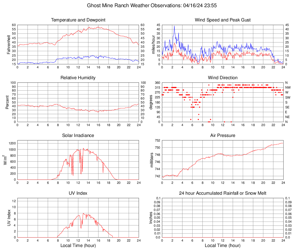 Temperature (F) 36.8 36.1 @ 00:00 57.6 @ 15:55 46.2