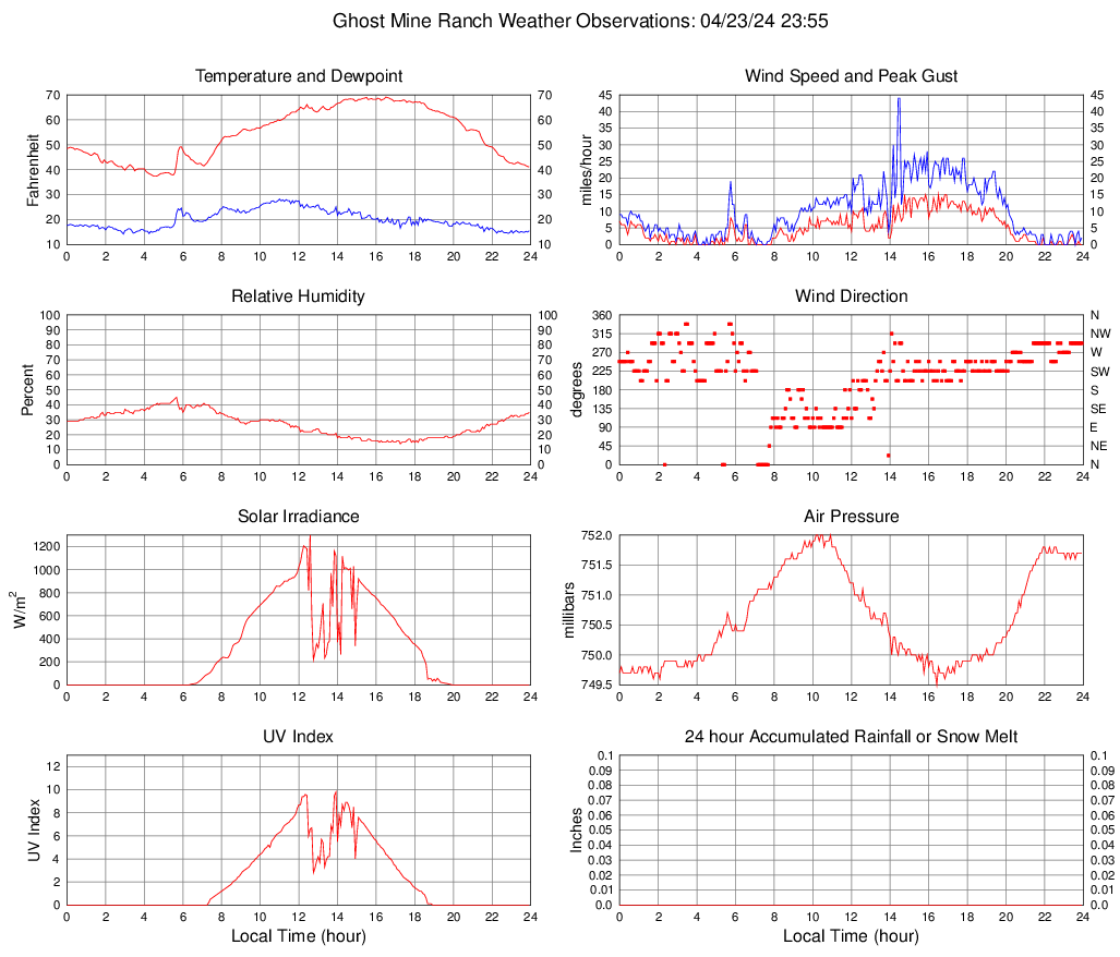 Temperature (F) 41.1 37.4 @ 04:30 69.1 @ 16:30 54.3