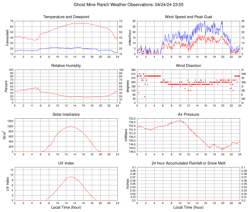 Temperature (F) 39.1 34.9 @ 04:45 66.4 @ 15:00 53.4