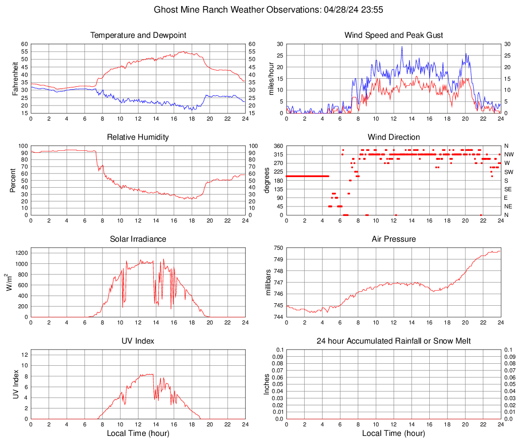 Temperature (F) 35.9 30.7 @ 02:55 55.2 @ 17:05 42.4