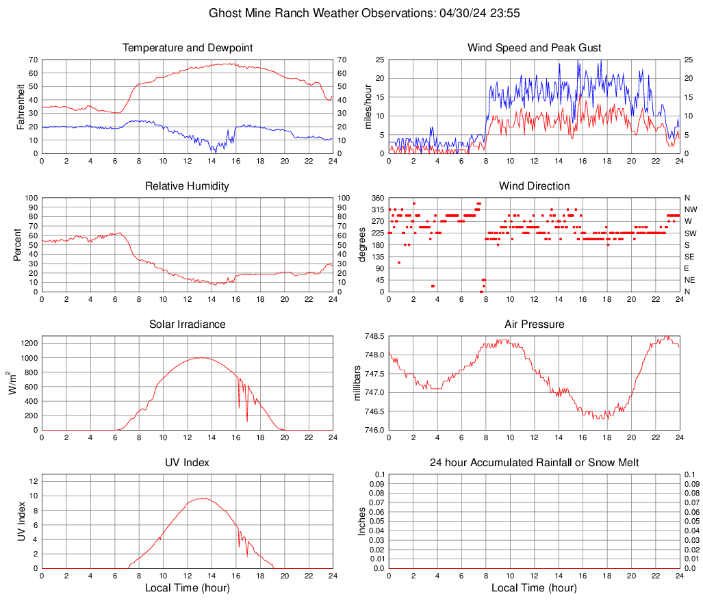 Temperature (F) 43.0 30.3 @ 05:50 67.1 @ 15:30 51.0