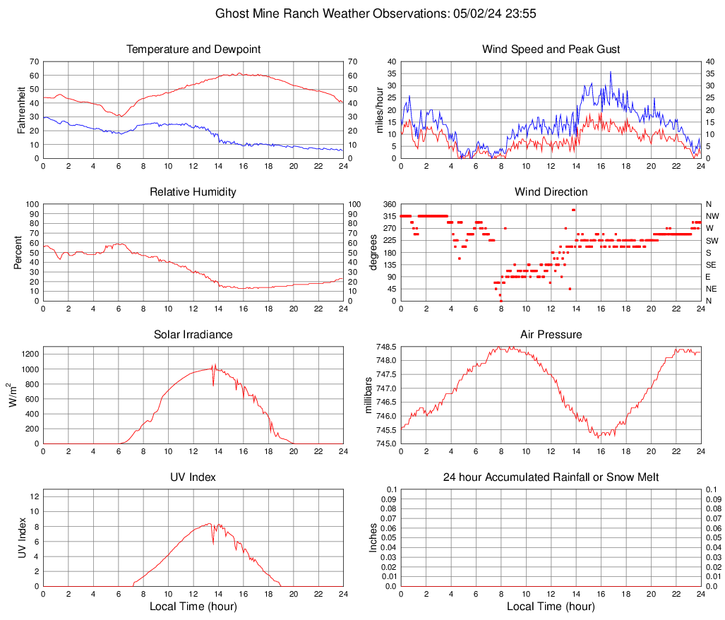 Dewpoint (F) 5.6 5.6 @ 23:55 29.7 @ 00:00 17.2