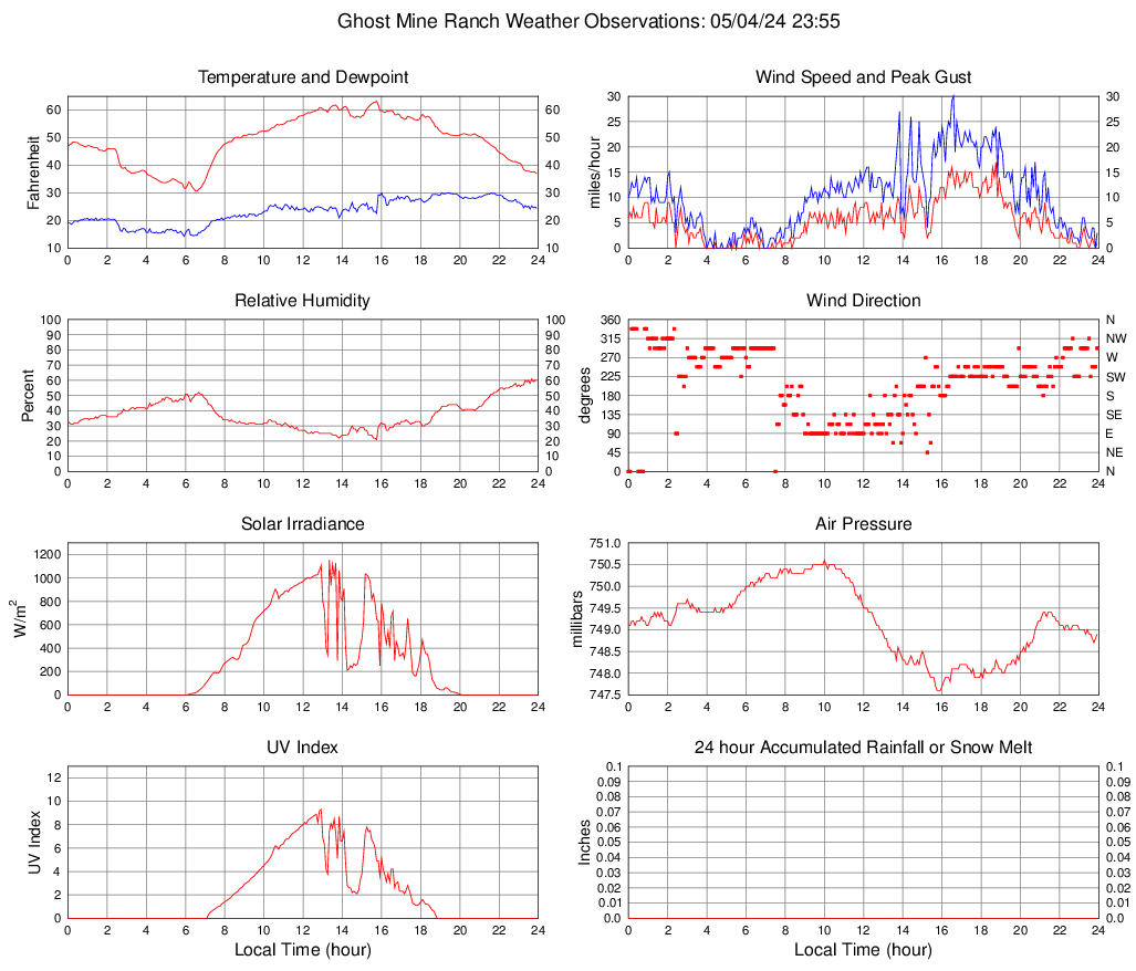 Temperature (F) 37.0 30.6 @ 06:35 63.2 @ 15:45 48.8
